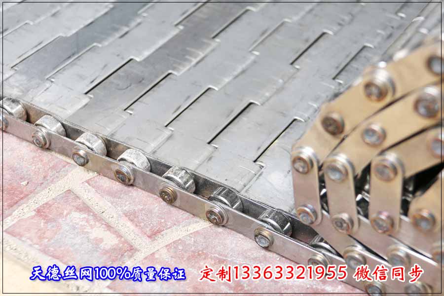 鏈板式網帶使用時間比較長,不容易出現問題,即使會出現小的問題,但是更換起來更容易,因為這種網帶是由單塊鏈板拼接而成的,出現了問題我們只需要更換單塊鏈板就可以,這樣節省了成本也節省了時間,相對來說提高了工作效率。我們在選擇鏈板不銹鋼輸送帶的規格的時候要根據每米輸送的面條的重量來決定。趙總的車間面條生產線30米長的總重量為300千克,也就是一米的鏈板上的承重為10千克,我們根據這個數據定制為以下規格: 輸送鏈板的厚度為1.2毫米,鏈接桿為6毫米,鏈條節距為31.75毫米,鏈板包括鏈條的總寬度為400毫米,中長度為30每米,材質全部不銹鋼304,鏈板表面不需要打孔。