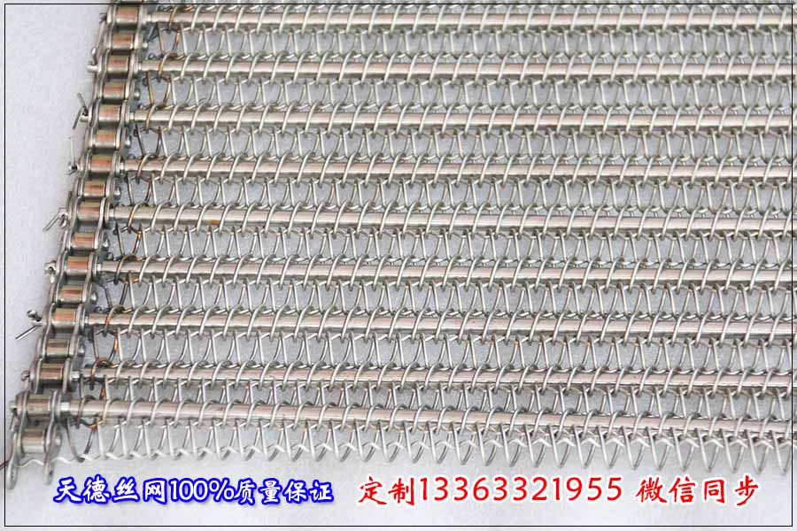 河北天德絲網制品有限公司生產烘干機輸送帶、輸送網鏈、輸送鏈板、耐高溫輸送帶、擋板網帶:13363321955 http://m.g2229.cn/