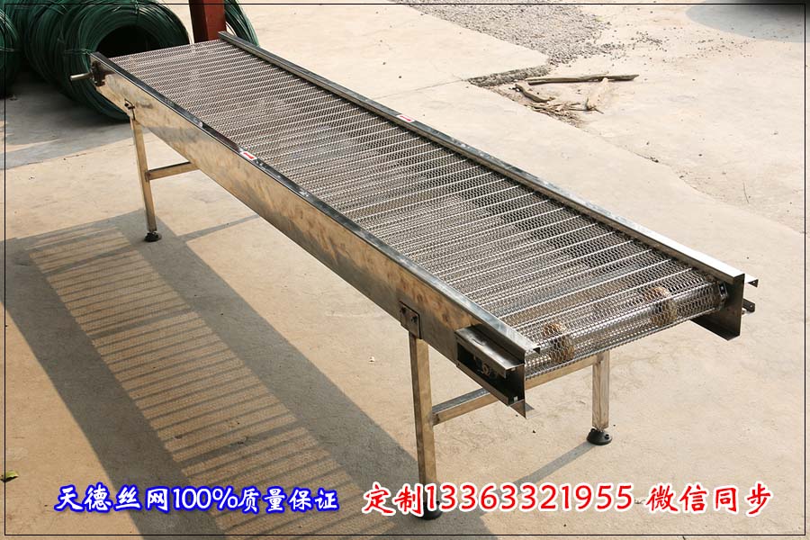 金屬網帶輸送機是以金屬材質的網鏈為承載面,在所需要的空間內連續傳動輸送物料的輸送機械。一般分為網帶式或鏈板式,可進行水平或傾斜輸送,輸送線路一般是固定的。輸送機輸送能力大,運距可長可短,是的勞動力替代者,還可在輸送過程中同時完成若干工藝操作,所以應用十分廣泛。