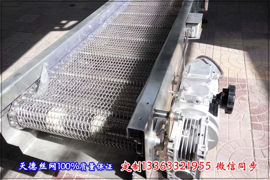河北天德絲網制品有限公司生產網帶輸送機、不銹鋼網帶、人字輸送帶、耐高溫輸送帶、擋板輸送帶:13363321955 http://m.g2229.cn/
