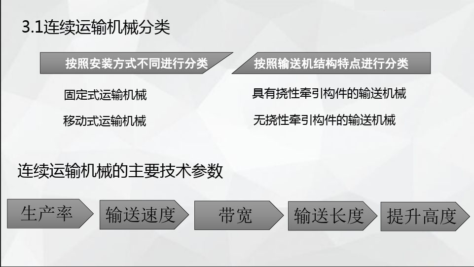 連續運輸機械的主要技術參數 主產率、輸送速度、帶寬、輸送長度、提升高度